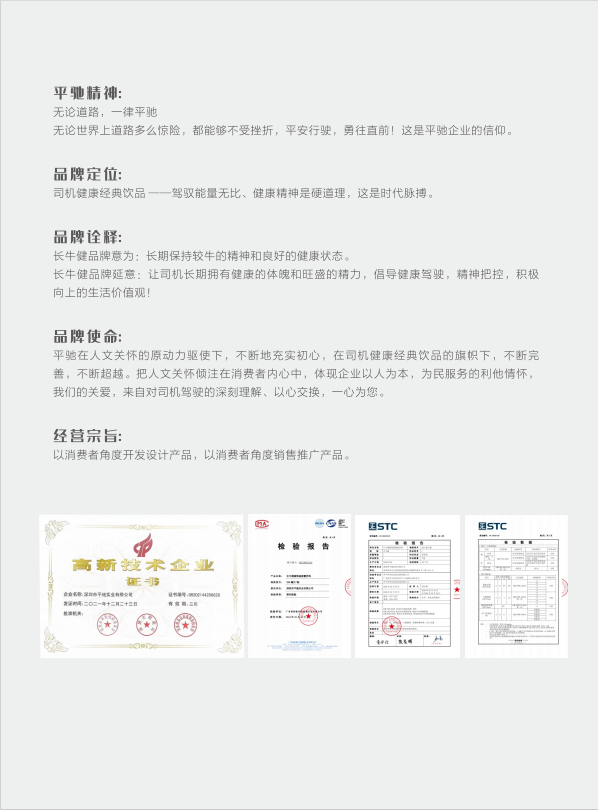 : 无酒精饮料-即饮型 、清洁剂 、润滑产品 、汽车美容化学制品 、汽车防冻液 、汽车蓄电池 、汽车传动液 、汽车制动器 ? 简介:深圳市平驰实业有限公司成立于2003年07月10日,注册地位于深圳市坪山区龙田街道老坑社区光科三路8号毅能达大厦1栋608,法定代表人为李长江。经营范围包括生产、销售汽车用不冻液、水箱宝、汽车制动液、自动排挡液;普通货运(道路运输经营许可证至2015年8月4日)、国内贸易、汽车蓄电池销售。(以上均不含法律、行政法规、国务院决定禁止及规定需前置审批项目)计算机软硬件及辅助设备批发;电子产品销售。(除依法须经批准的项目外,凭营业执照依法自主开展经营活动) 食品销售(仅销售预包装食品)